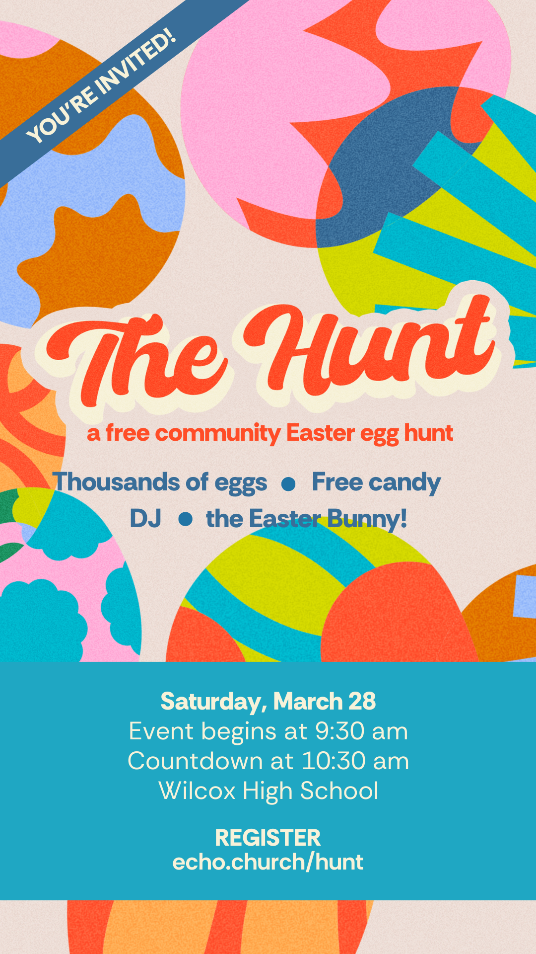 Hi! Echo is hosting a free community Easter egg hunt on March 28, and I thought of you. It’s a fun family event with tons of eggs, candy, kids’ activities, and the Easter Bunny. You should come!