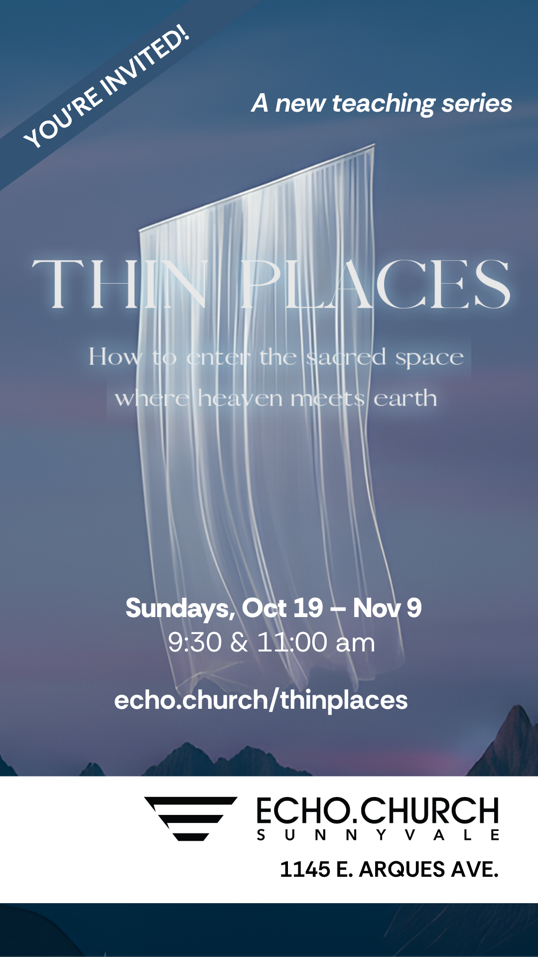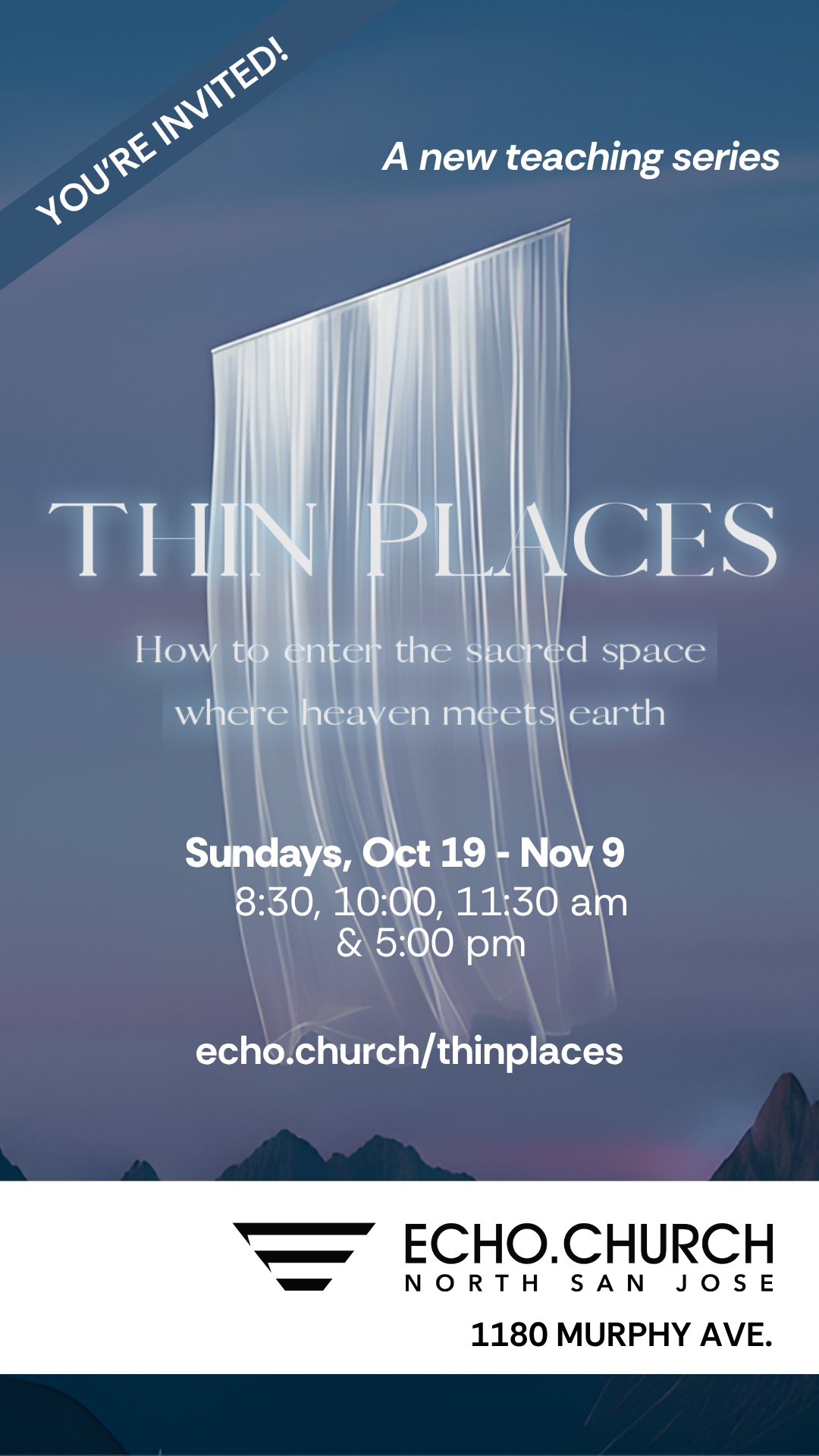 Hey friends! Come join us at Echo.Church for our new teaching series called Thin Places. Each week, we’ll discover how to enter the sacred space where Heaven meets earth and experience the fullness of God’s presence. DM me if interested! I’d love to save you a seat. For locations and times, go to echo.church/thinplaces