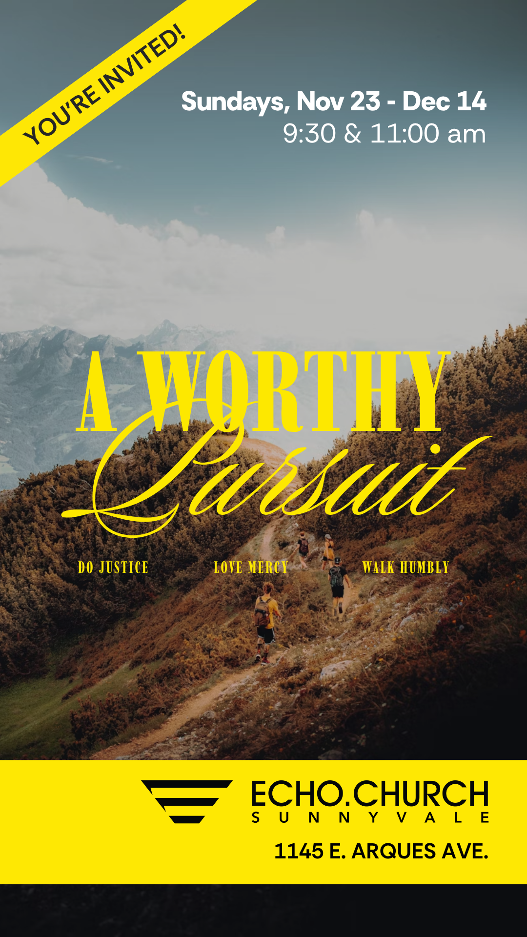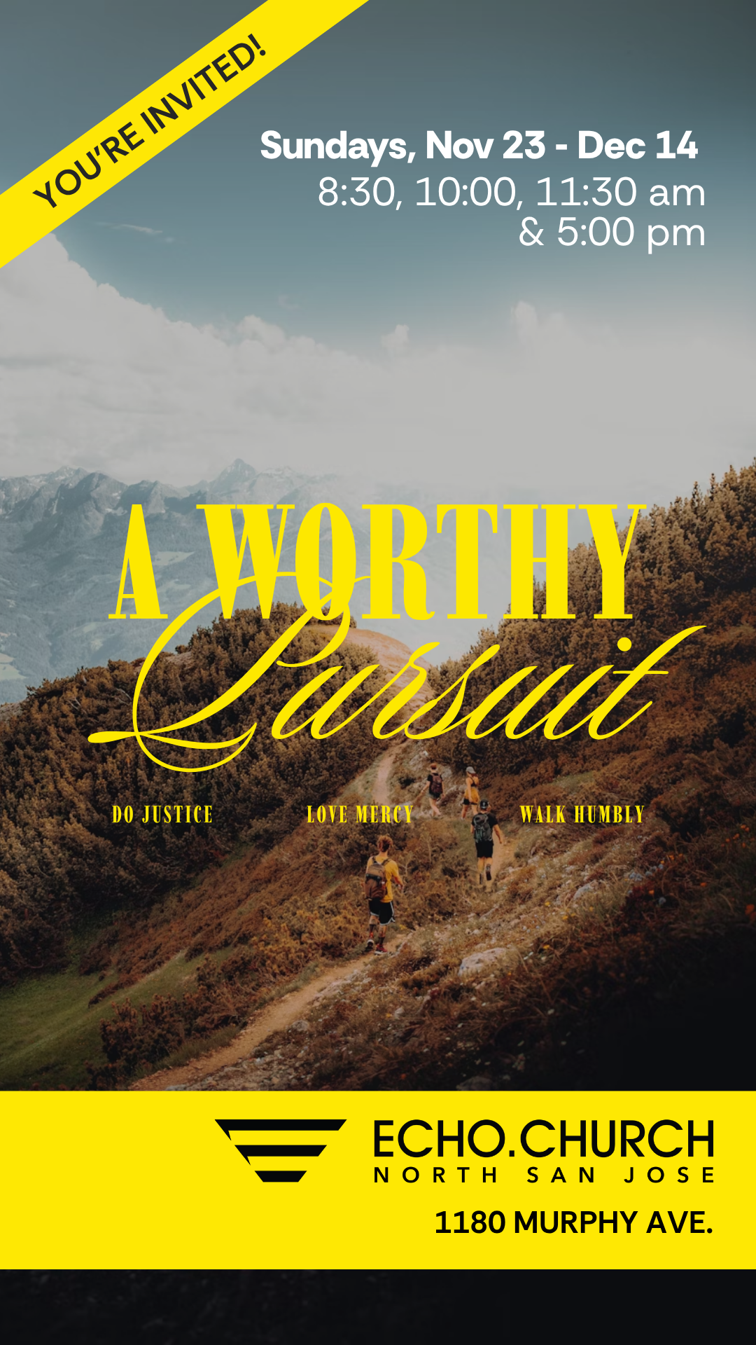 Hey friends! Come join us at Echo.Church for our new teaching series called A Worthy Pursuit. Each week, we’ll discover how even small acts of creativity, kindness, and courage ripple into eternity, DM me if interested! I’d love to save you a seat. For locations and times, go to echo.church/worthypursuit
