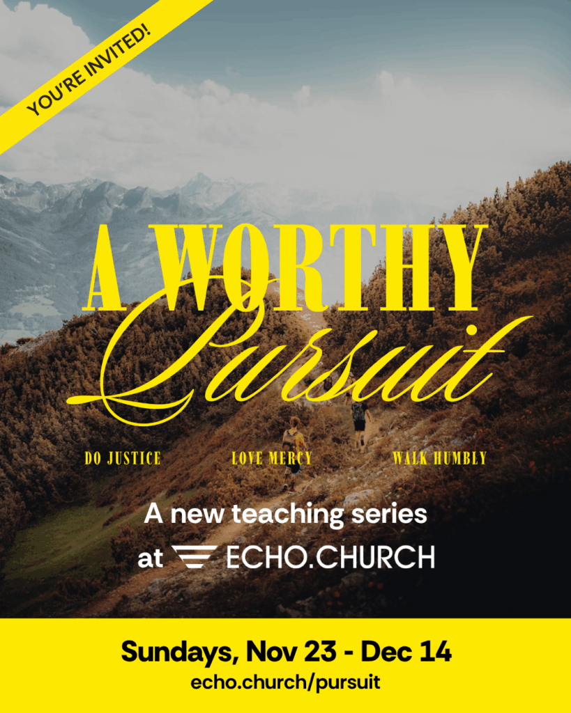 You’re invited to A Worthy Pursuit at Echo.Church, a new teaching to discover how even small acts of creativity, kindness, and courage ripple into eternity, Check out echo.church/worthypursuit for locations and times, or feel free to DM me with any questions. Hope you’ll join me!